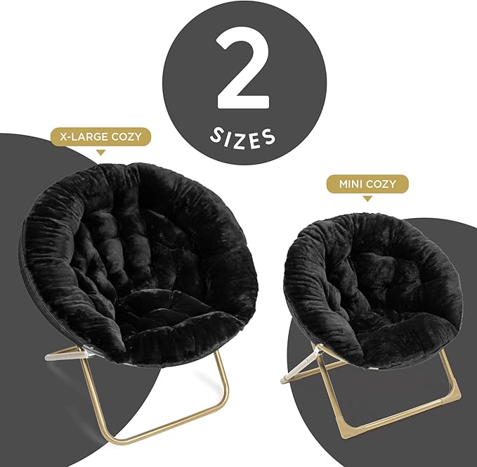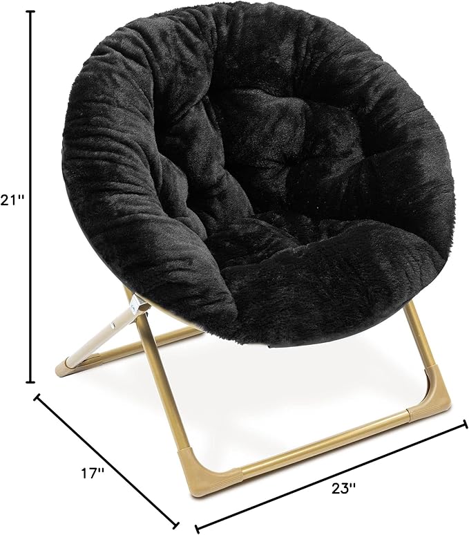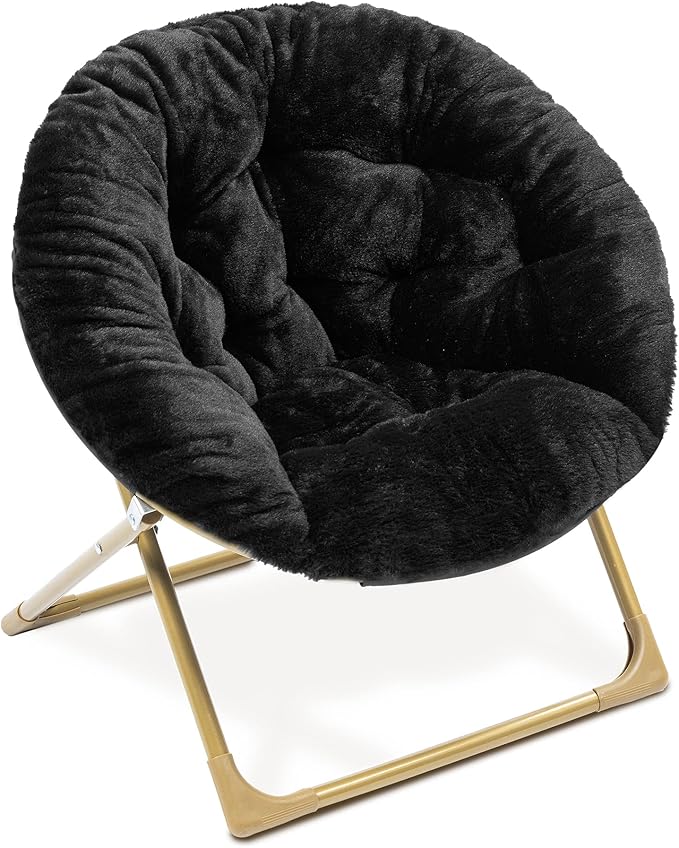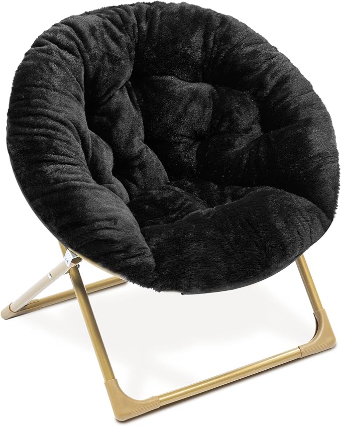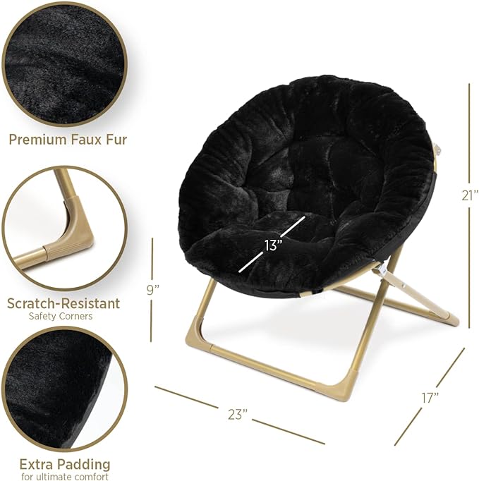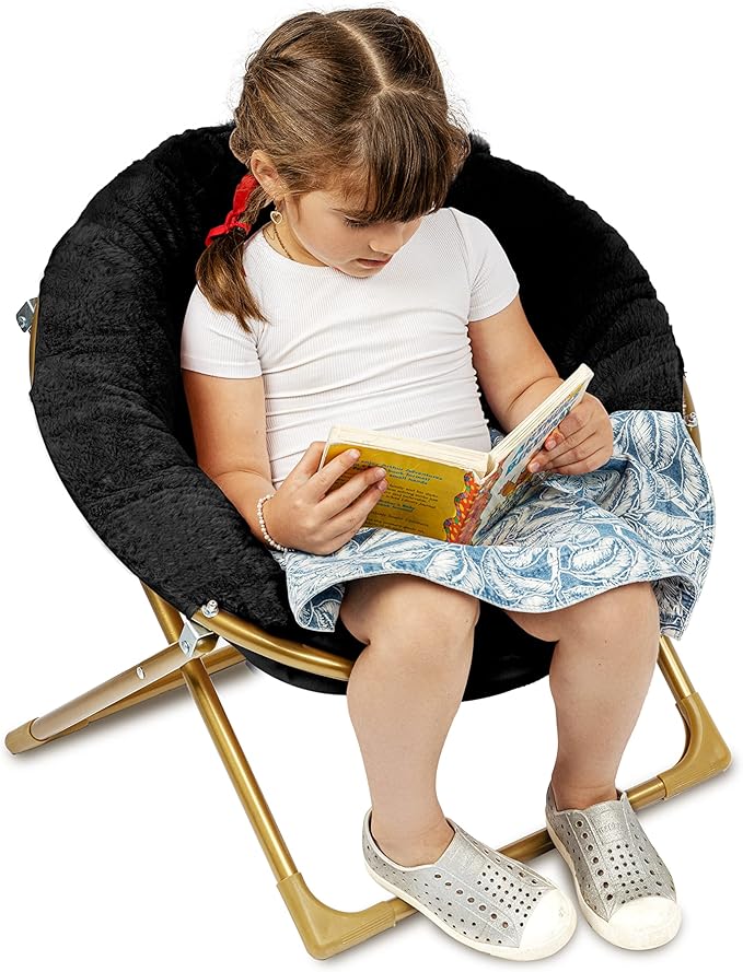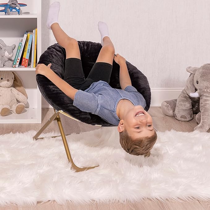 Milliard Mini Cozy Chair for Kids, Sensory Faux Fur Folding Saucer Chair for Toddlers, Black