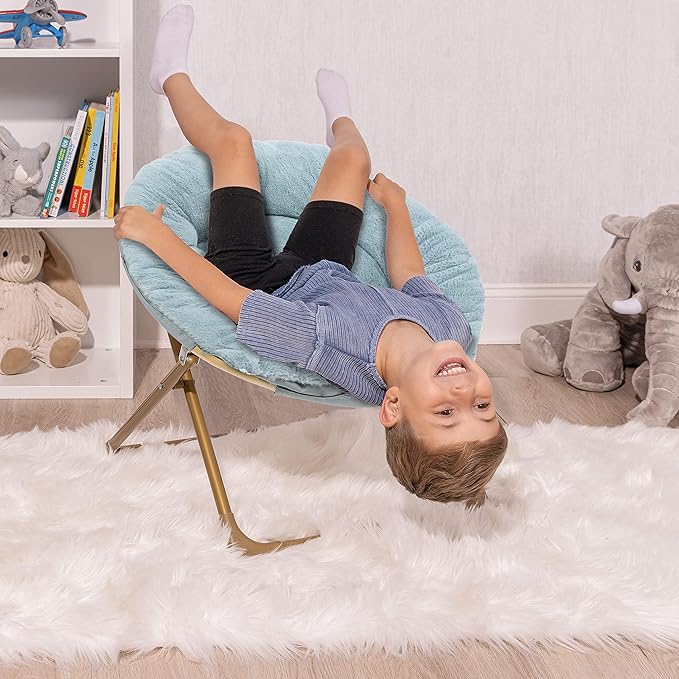Milliard Mini Cozy Chair for Kids, Sensory Faux Fur Folding Saucer Chair for Toddlers, Blue