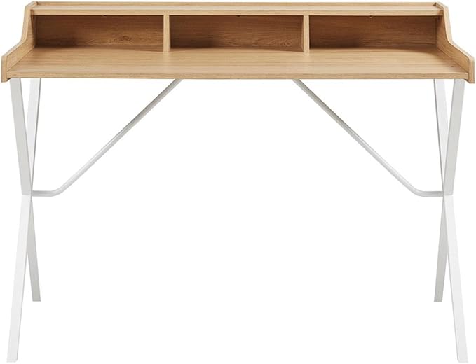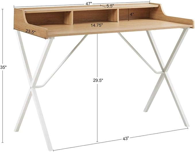 510 DESIGN Laurel Home Office Computer Desk for Small Spaces - Modern Wooden Top Writing Table with Sturdy Metal Legs, Living Room Furniture, Easy Assembly, 47" W x 23.5" D x 35" H, Natural/White