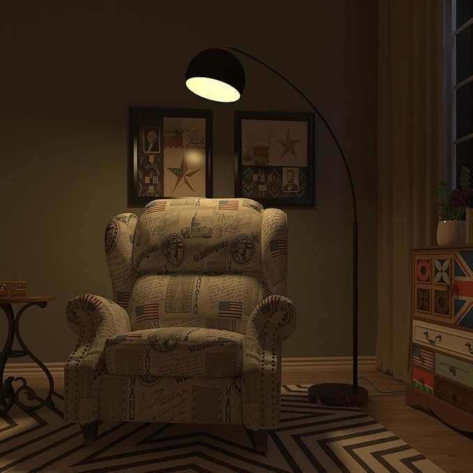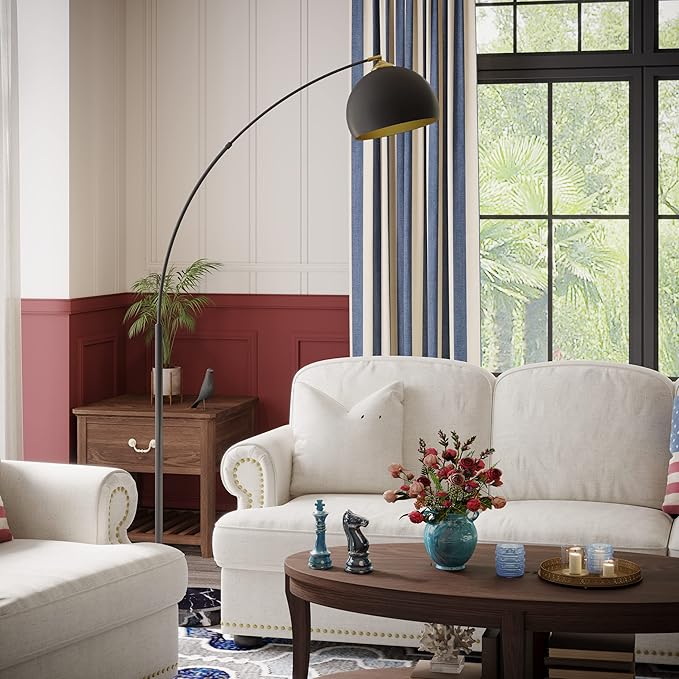 GETINLIGHT 66" Modern Black Metal Arc Floor Lamp with Inner Gold Metal Shade and Black Marble Base, LED Bulb Included, IN-0806-1-BK