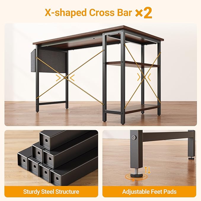 CubiCubi 47 Inch Small L Shaped Computer Desk with Storage Shelves Home Office Corner Desk Study Writing Table, Deep Brown