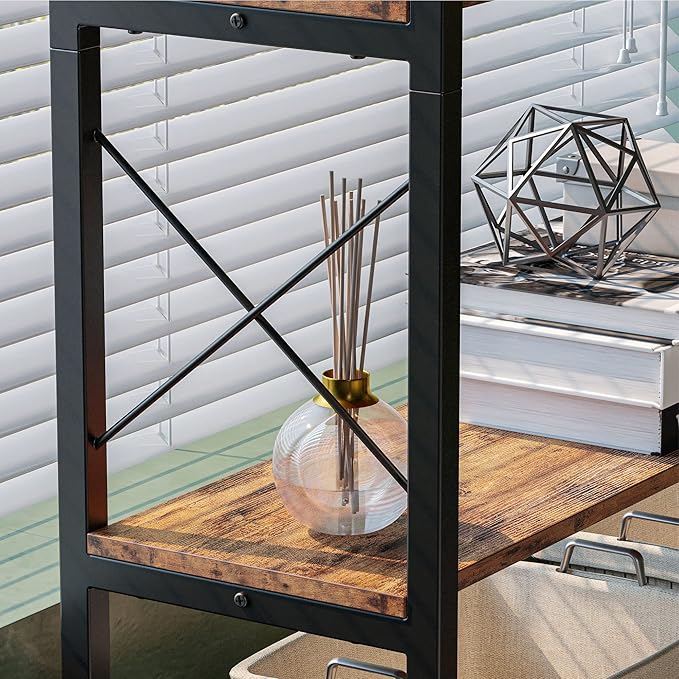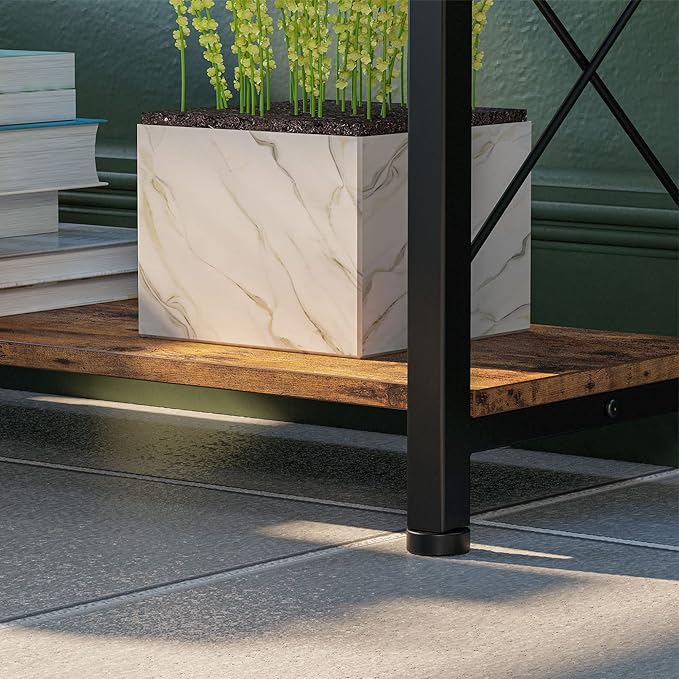 IRONCK 5-Shelf Corner Bookcase, Vintage Industrial Corner Bookshelf Etagere Bookcase, 5 Tier Corner Shelf Storage Rack with Metal Frame for Living Room Home Office