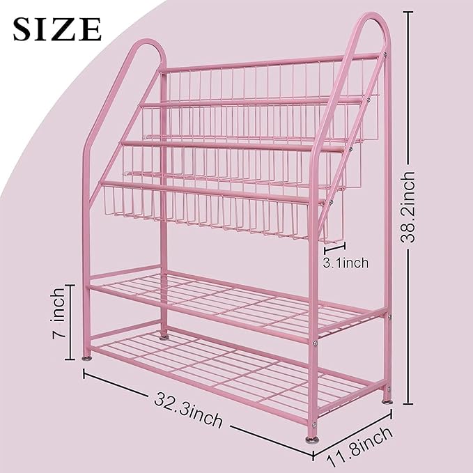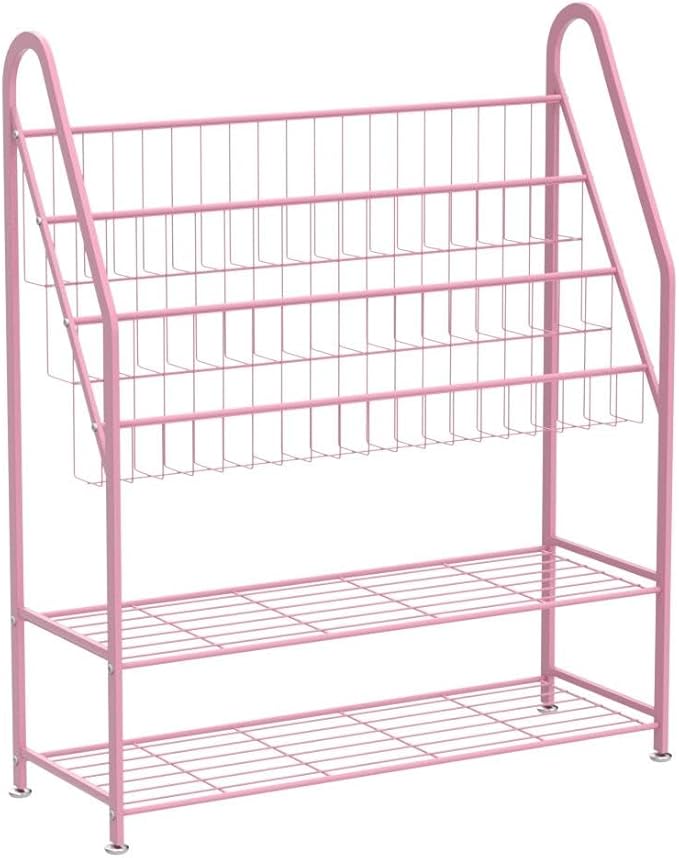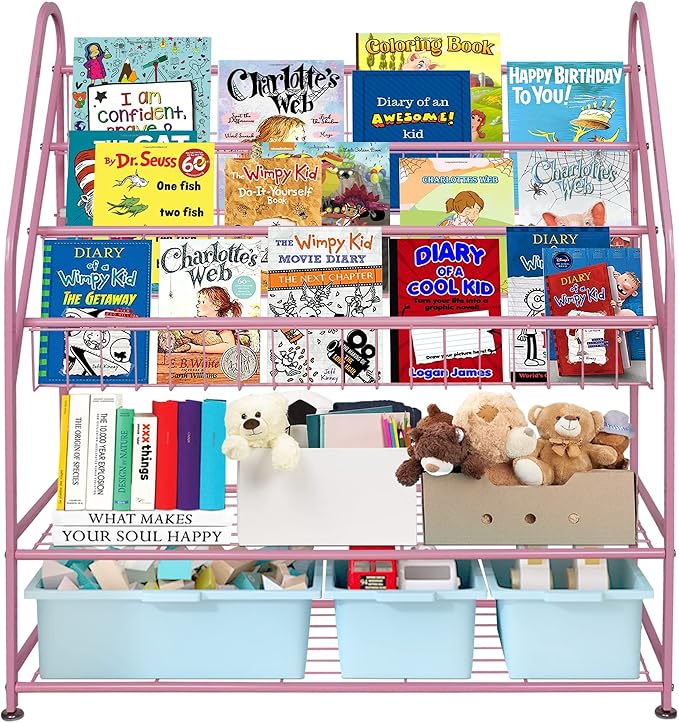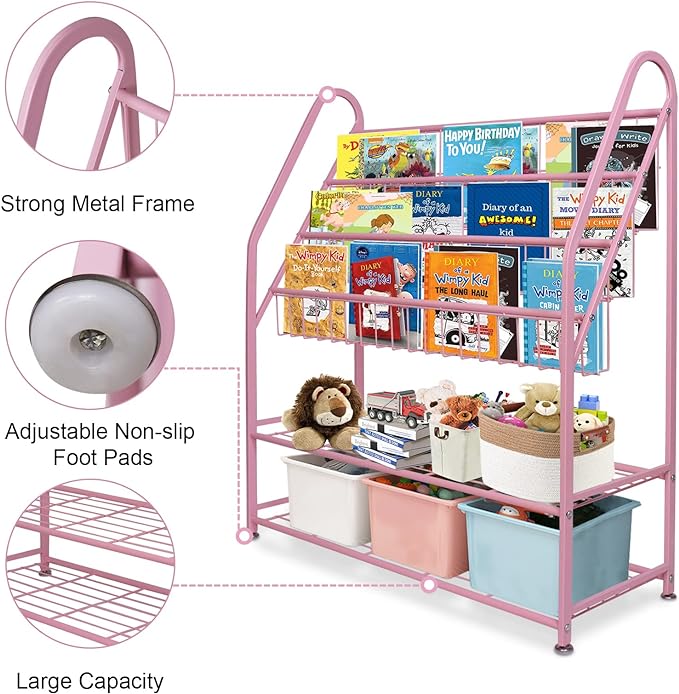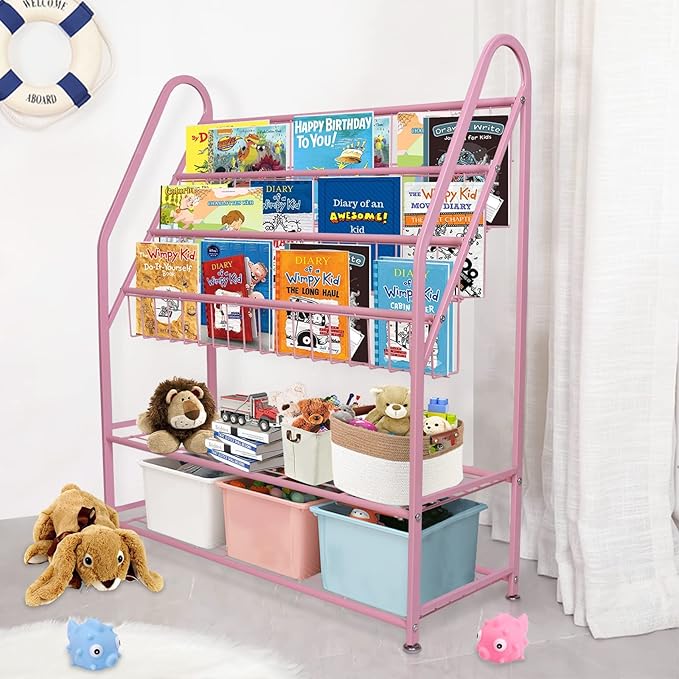 aboxoo Metal Kids Bookshelf Pink Bookcase Freestanding for Children Girls Room 32 inches Large Toddler Pink Stable Bookcase Bookstore Library Book Unit Storage