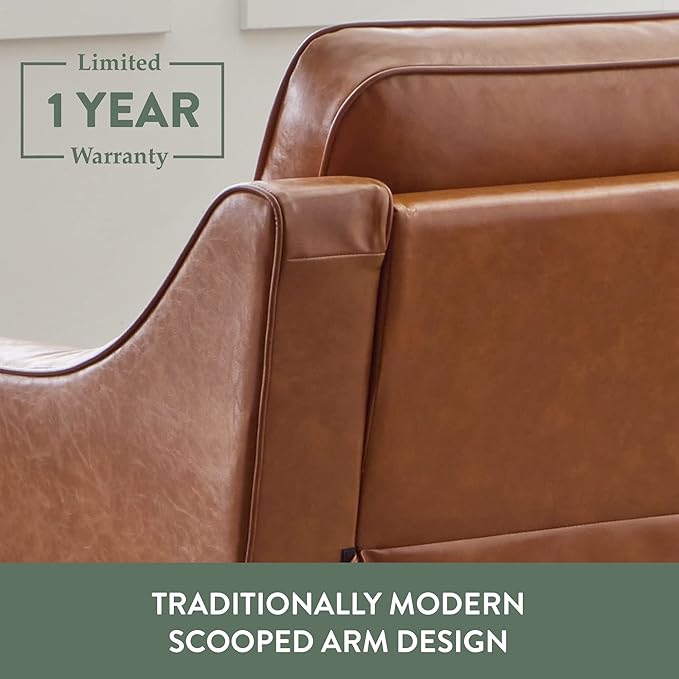 Edenbrook Jensen Upholstered Couch - Couches for Living Room - Camel Faux Leather Couch - Living Room Furniture - Small Couch - Seats Three - Scoop Arm Modern Couch