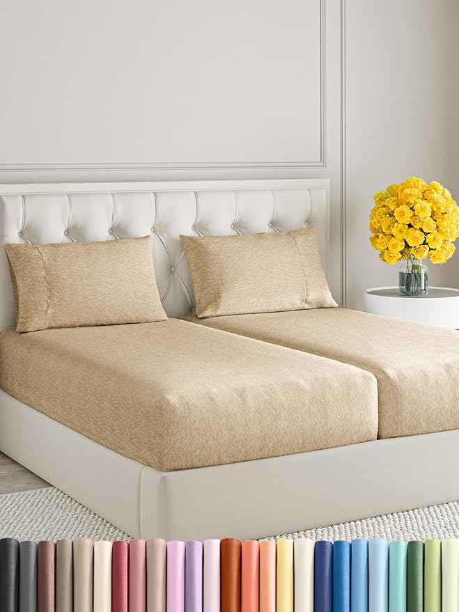 Split King Size 5 Piece Sheet Set - Comfy Breathable & Cooling Sheets - Hotel Luxury Bed Sheets for Women & Men - Deep Pockets, Easy-Fit, Soft & Wrinkle Free Sheets - Heathered Tan Oeko-Tex Bed Sheets