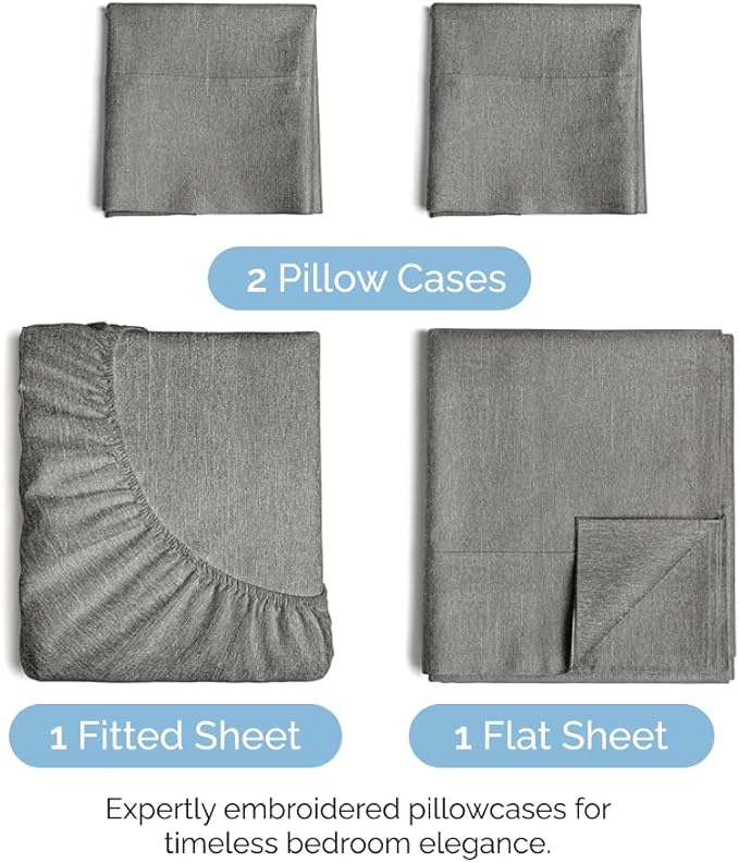 King Size 4 Piece Sheet Set - Comfy Breathable & Cooling Sheets - Hotel Luxury Bed Sheets for Women & Men - Deep Pockets, Easy-Fit, Soft & Wrinkle Free Sheets - Heathered Grey Oeko-Tex Bed Sheet Set