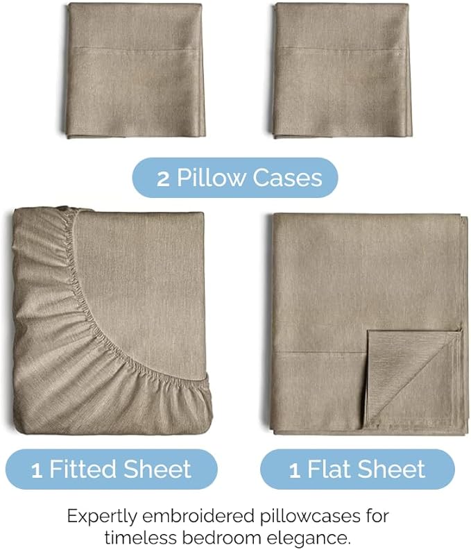 Cal King Size 4 Piece Sheet Set - Comfy Breathable & Cooling Sheets - Hotel Luxury Bed Sheets for Women & Men - Deep Pockets, Easy-Fit, Soft & Wrinkle Free Sheets - Heathered Beige Oeko-Tex Bed Sheets