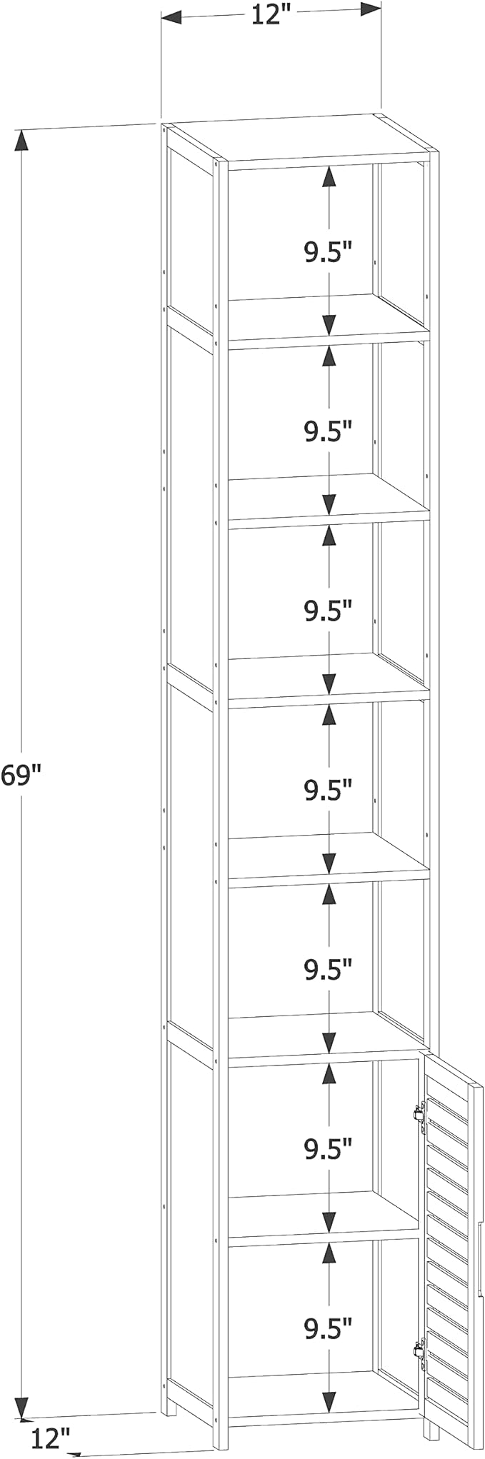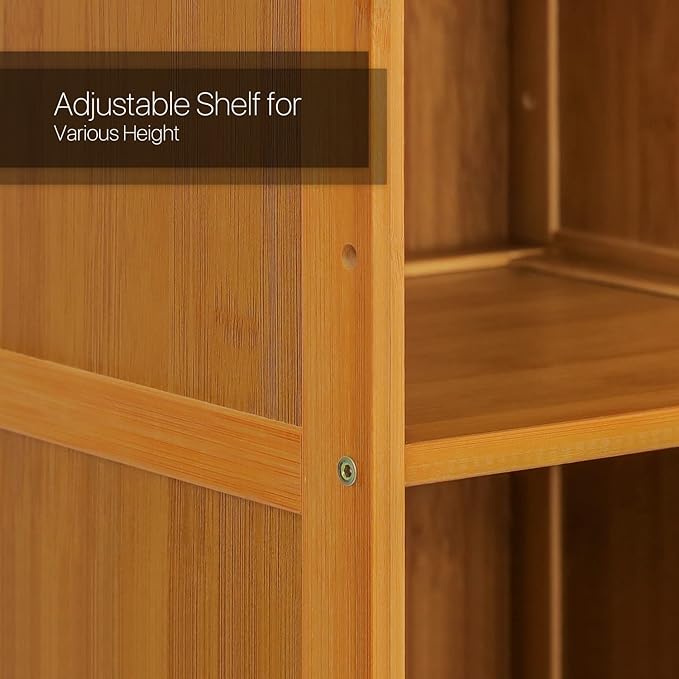 MoNiBloom Tall 7 Tier Bookcase with Door, Bamboo Freestanding Display Storage Cabinet Shelves Collection Decor Furniture for Home Living Room Bedroom, Brown