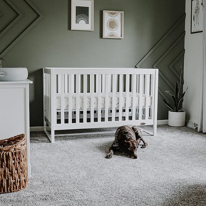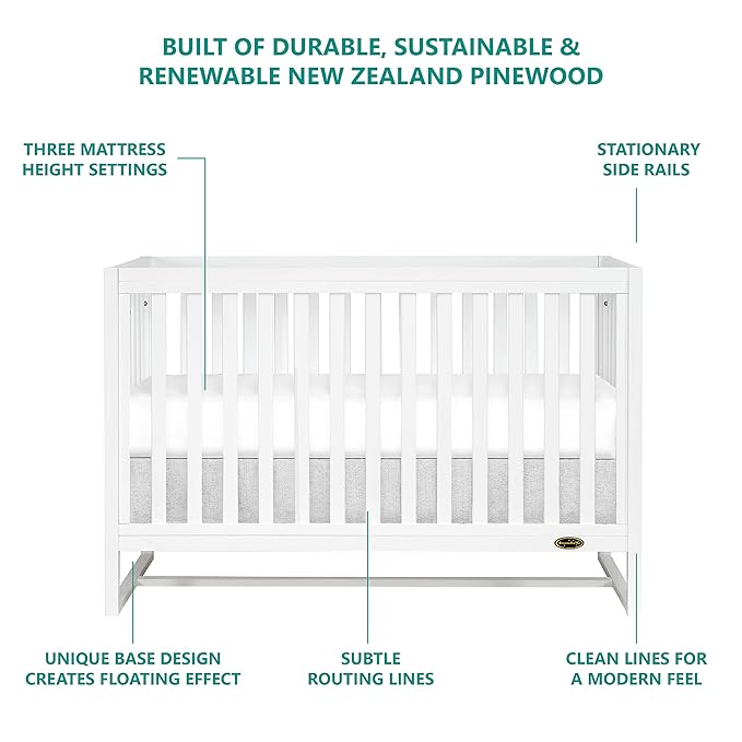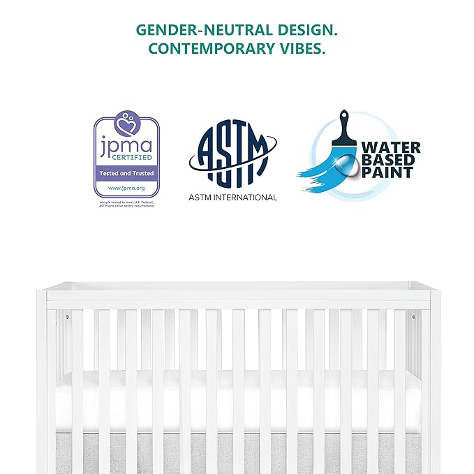 Arlo 5-in-1 Convertible Crib in White, JPMA Certified, 3 Mattress Height Settings, Non-Toxic Finish, Made of Sustainable and Sturdy Pinewood
