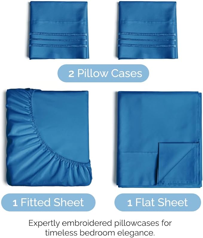 About This 4 PIECE BED SHEET SET: 2 pillow cases and a flat sheet and fitted sheet. Flat Sheet (108"...