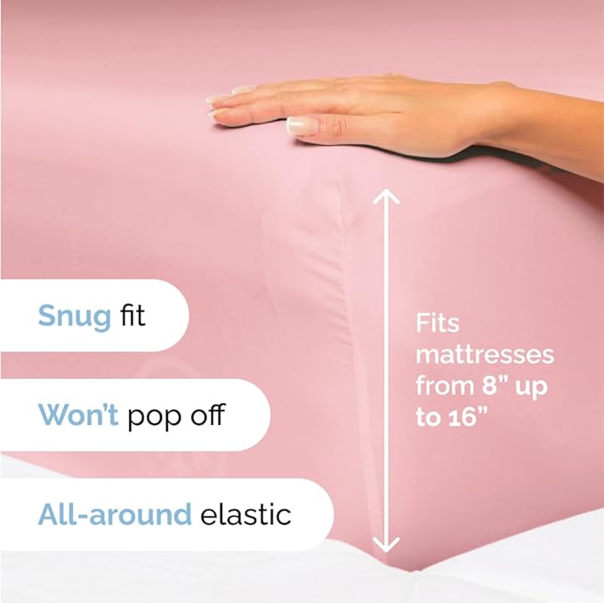 Cal King Size 4 Piece Sheet Set - Comfy Breathable & Cooling Sheets - Hotel Luxury Bed Sheets for Women & Men - Deep Pockets, Easy-Fit, Soft & Wrinkle Free Sheets - Baby Pink Oeko-Tex Bed Sheet Set