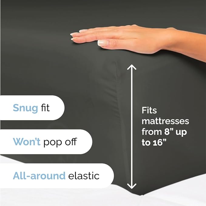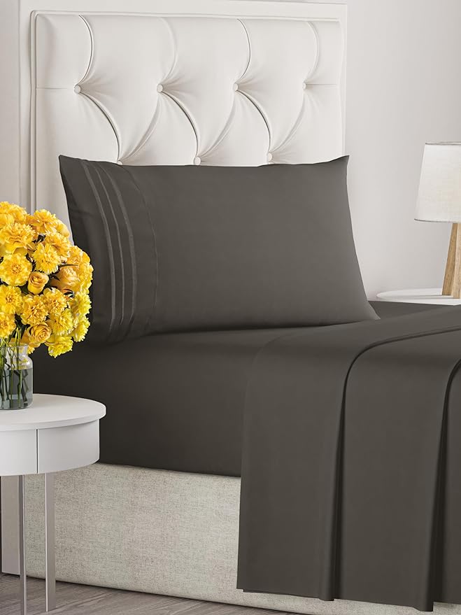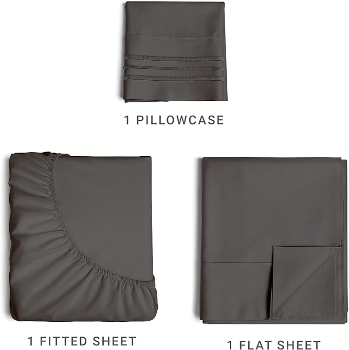 Twin Size 3 Piece Sheet Set - Comfy Breathable & Cooling Sheets - Hotel Luxury Bed Sheets for Women & Men - Deep Pockets, Easy-Fit, Extra Soft & Wrinkle Free Sheets - Charcoal Oeko-Tex Bed Sheet Set
