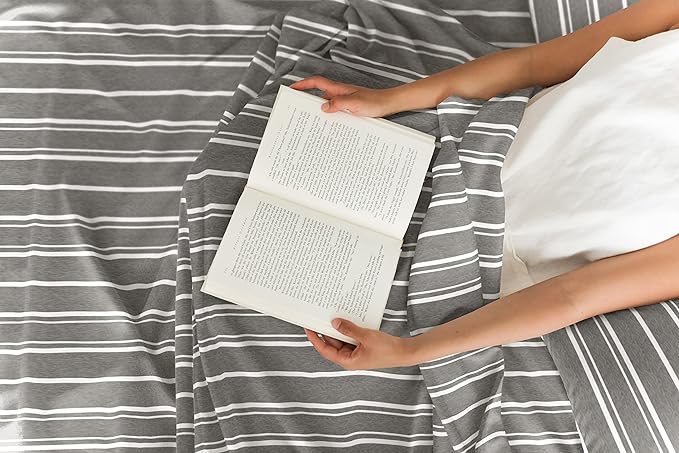 Split King Size 5 Piece Sheet Set - Comfy Breathable & Cooling Sheets - Hotel Luxury Bed Sheets for Women & Men - Deep Pockets, Easy-Fit, Soft & Wrinkle Free Sheets - Grey Stripes Oeko-Tex Bed Sheets