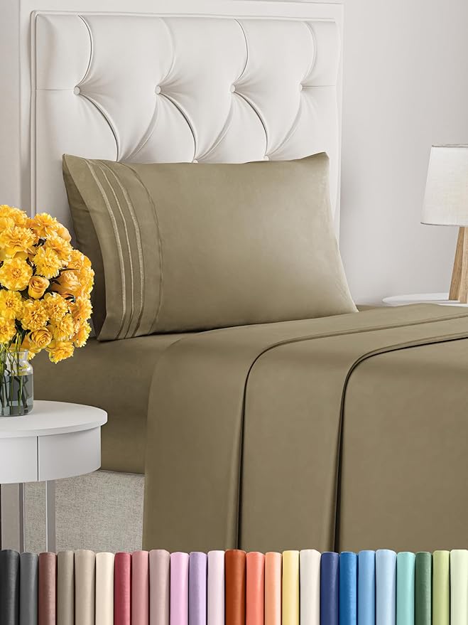 Twin Size 3 Piece Sheet Set - Comfy Breathable & Cooling Sheets - Hotel Luxury Bed Sheets for Women & Men - Deep Pockets, Easy-Fit, Extra Soft & Wrinkle Free Sheets - Khaki Oeko-Tex Bed Sheet Set
