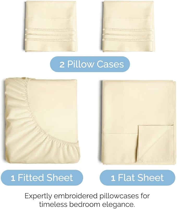 Full Size 4 Piece Sheet Set - Comfy Breathable & Cooling Sheets - Hotel Luxury Bed Sheets for Women & Men - Deep Pockets, Easy-Fit, Extra Soft & Wrinkle Free Sheets - Off White Oeko-Tex Bed Sheet Set