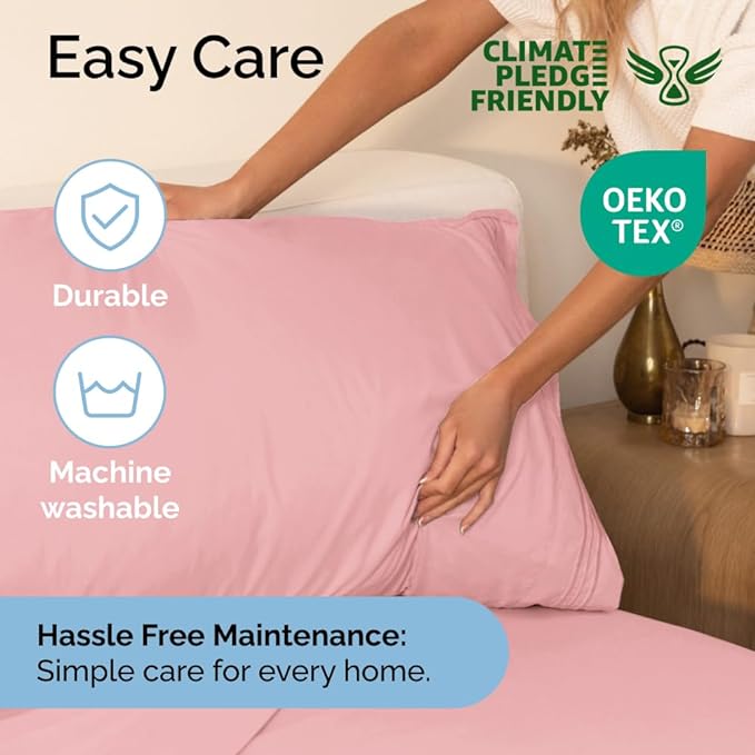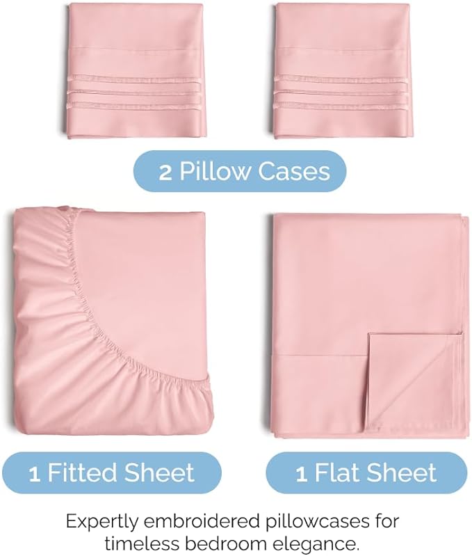 Queen Size 4 Piece Sheet Set - Comfy Breathable & Cooling Sheets - Hotel Luxury Bed Sheets for Women & Men - Deep Pockets, Easy-Fit, Soft & Wrinkle Free Sheets - Baby Pink Oeko-Tex Bed Sheet Set