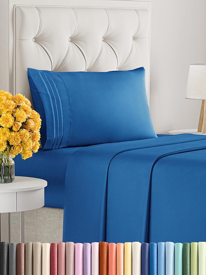 Twin XL Size 3 Piece Sheet Set - Comfy Breathable & Cooling Sheets - Hotel Luxury Bed Sheets for Women & Men - Deep Pockets, Easy-Fit, Soft & Wrinkle Free Sheets - Royal Blue Oeko-Tex Bed Sheet Set