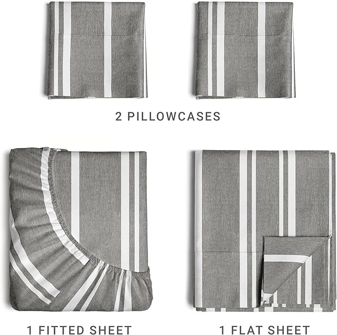Cal King Size 4 Piece Sheet Set - Comfy Breathable & Cooling Sheets - Hotel Luxury Bed Sheets for Women & Men - Deep Pockets, Easy-Fit, Soft & Wrinkle Free Sheets - Grey Stripes Oeko-Tex Bed Sheet Set