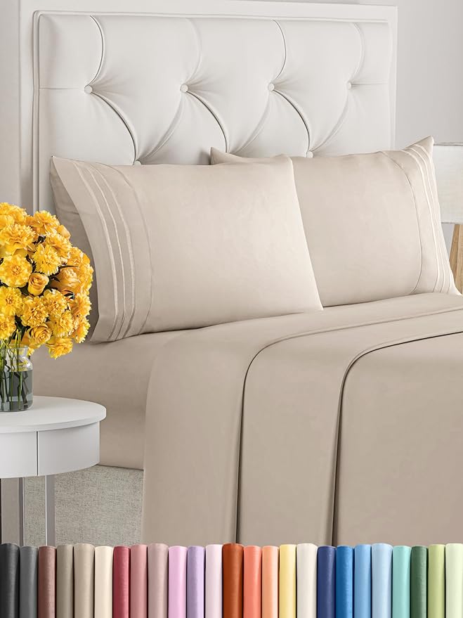 Queen Size 4 Piece Sheet Set - Comfy Breathable & Cooling Sheets - Hotel Luxury Bed Sheets for Women & Men - Deep Pockets, Easy-Fit, Extra Soft & Wrinkle Free Sheets - Wheat Oeko-Tex Bed Sheet Set