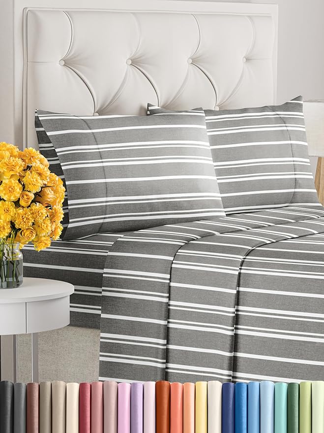 Full Size 4 Piece Sheet Set - Comfy Breathable & Cooling Sheets - Hotel Luxury Bed Sheets for Women & Men - Deep Pockets, Easy-Fit, Soft & Wrinkle Free Sheets - Grey Stripes Oeko-Tex Bed Sheet Set