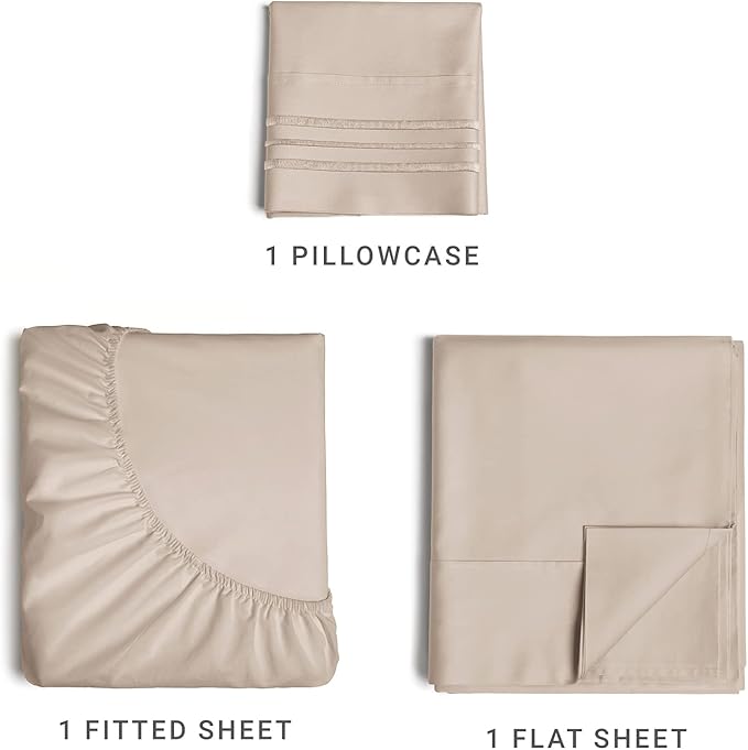 Twin Size 3 Piece Sheet Set - Comfy Breathable & Cooling Sheets - Hotel Luxury Bed Sheets for Women & Men - Deep Pockets, Easy-Fit, Extra Soft & Wrinkle Free Sheets - Wheat Oeko-Tex Bed Sheet Set