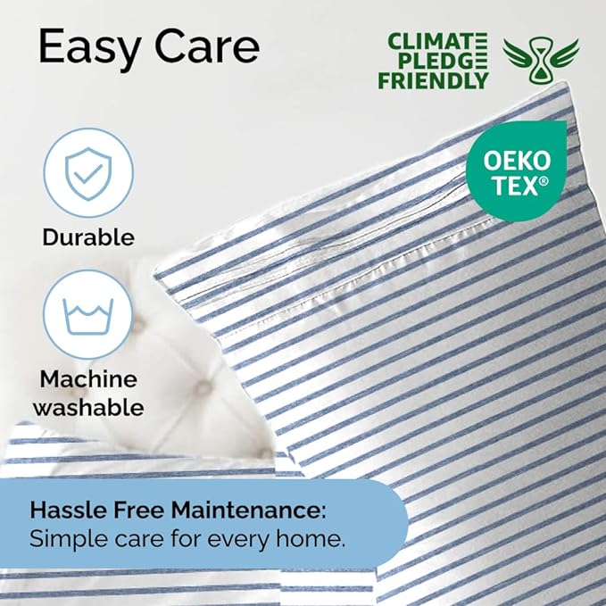 Split King Size 5 Piece Sheet Set - Comfy Breathable & Cooling Sheets - Hotel Luxury Bed Sheets for Women & Men - Deep Pockets, Easy-Fit, Soft & Wrinkle Free Sheets - Blue Stripes Oeko-Tex Bed Sheets