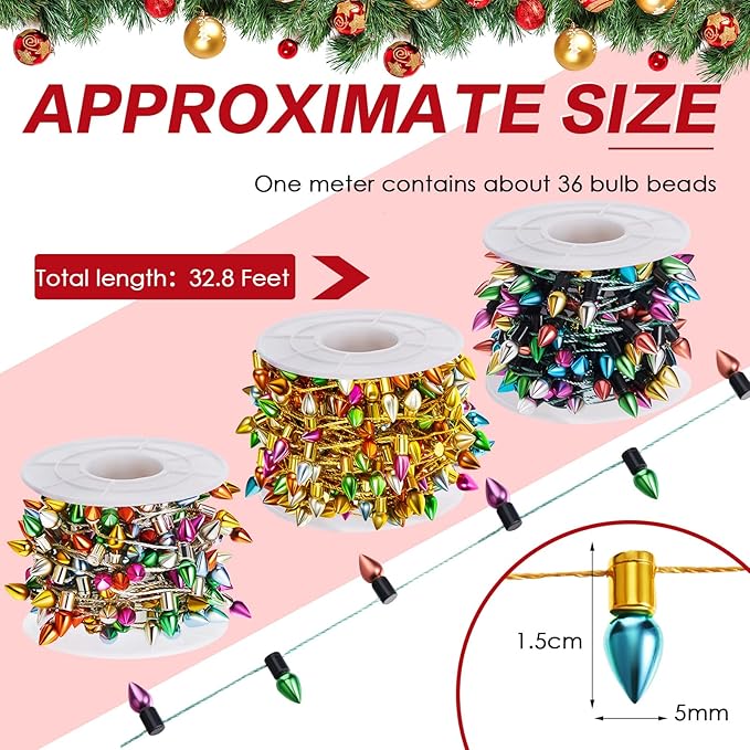 About This Vintage Christmas Lights: These classic Christmas lights feature red, green, gold, and silver bulbs per meter for a...