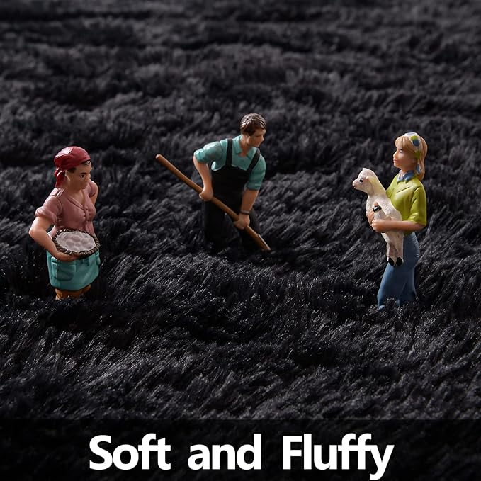 Black Round Rug for Bedroom, Super Fluffy Circle Rugs for Baby Nursery, 4'X4' Feet Furry Carpet for Children Kids Room, Cute Soft Shaggy Rug for Girls Home Decor, Fuzzy Plush Carpets for Dorm