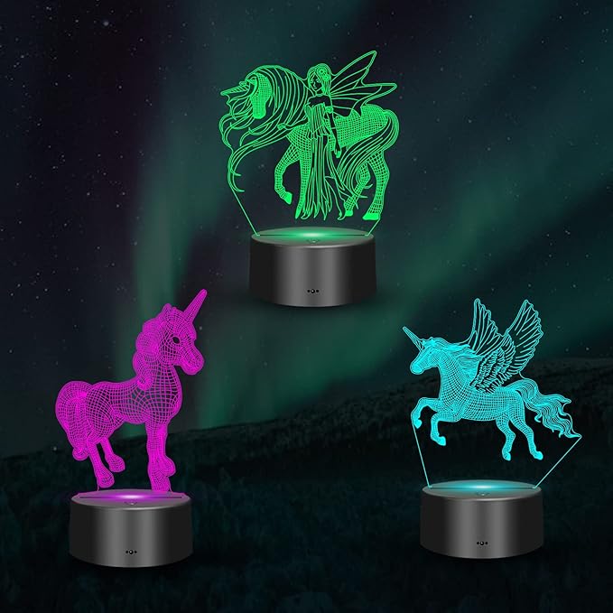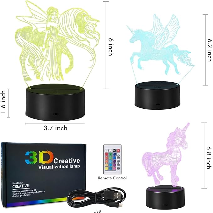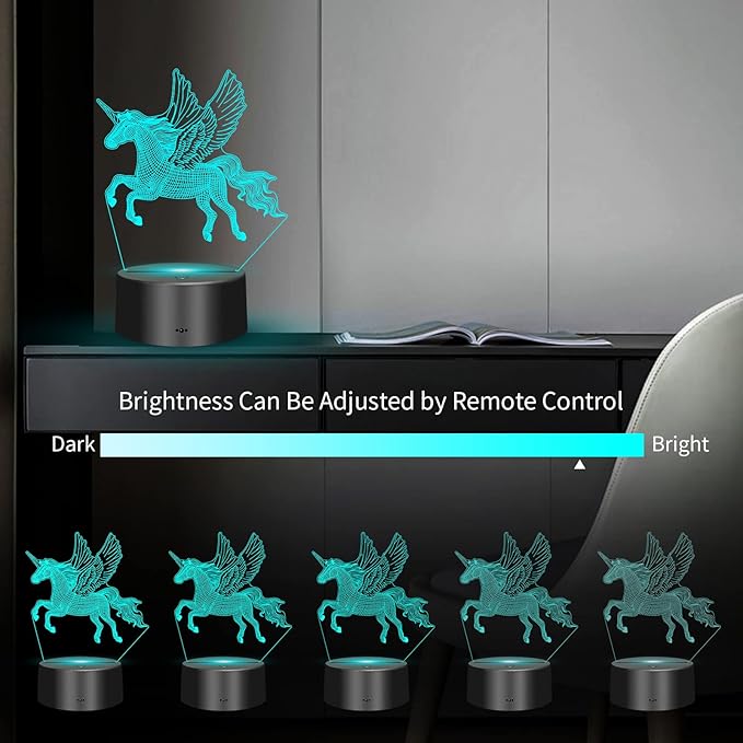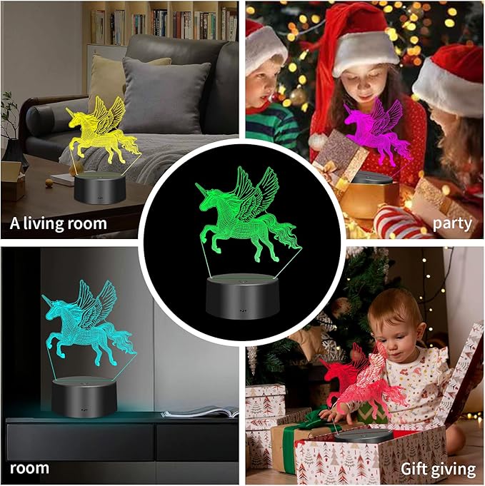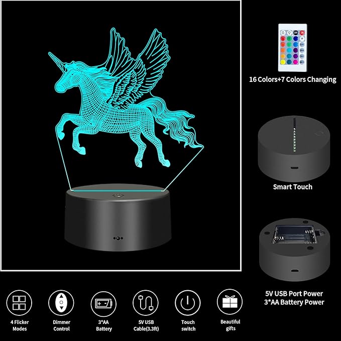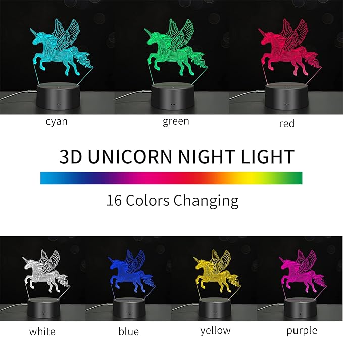 About This 【LED Creative Visual Effect】Using a creative laser engraved optical acrylic plate,Unicorn night light looks like a 3D etched...