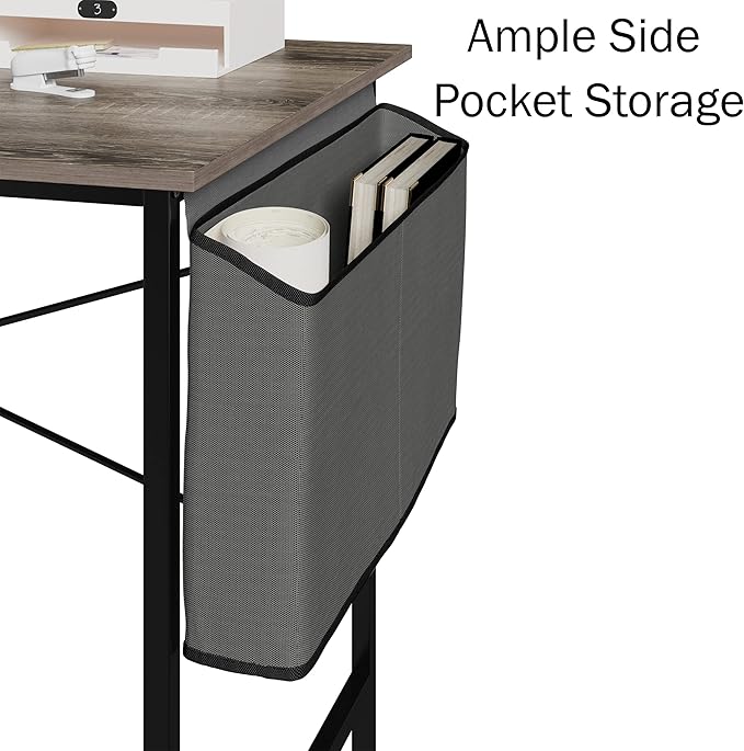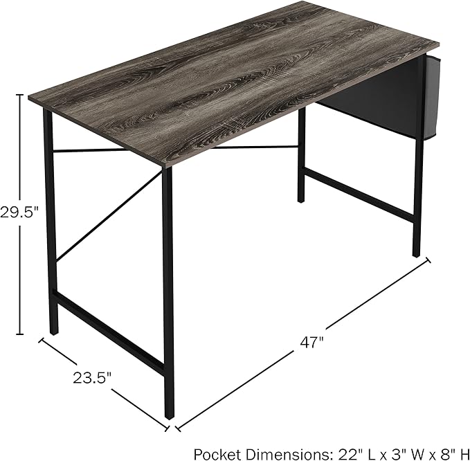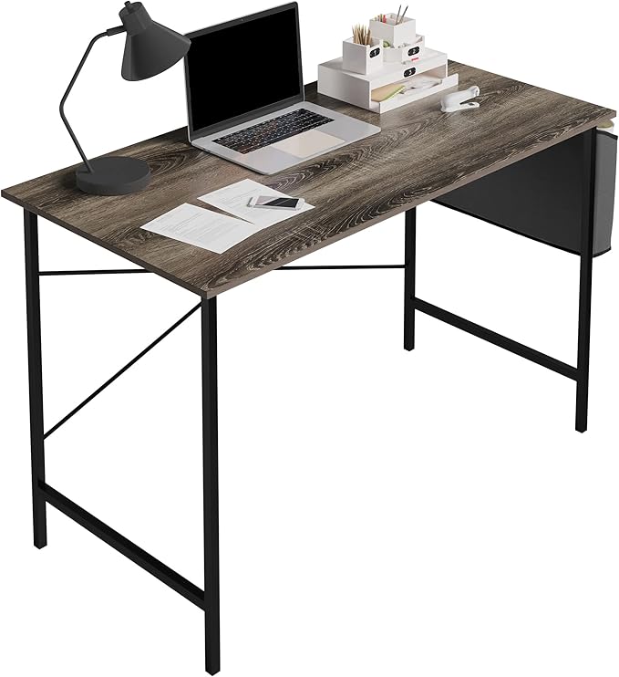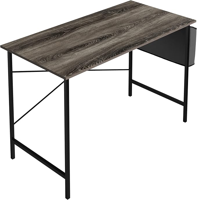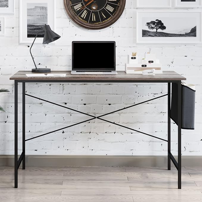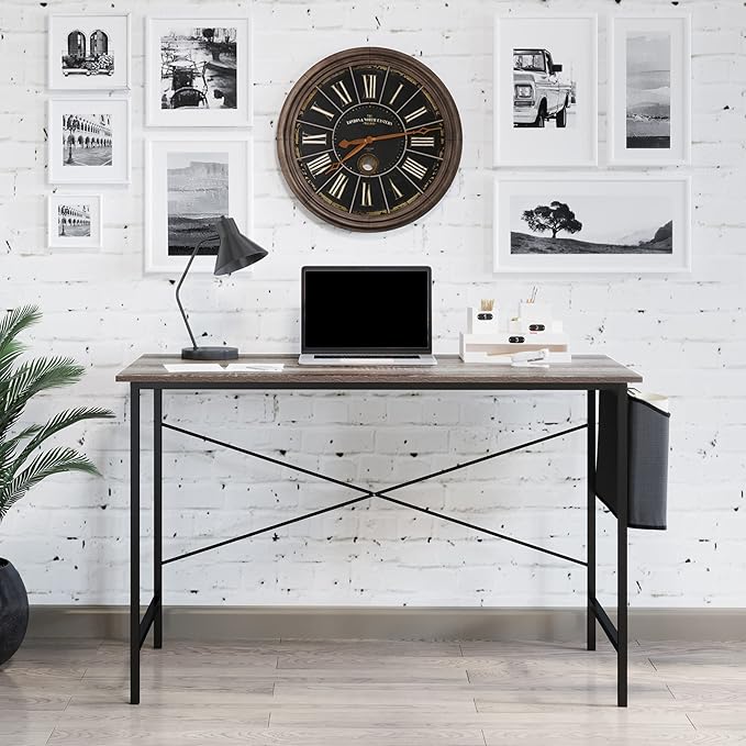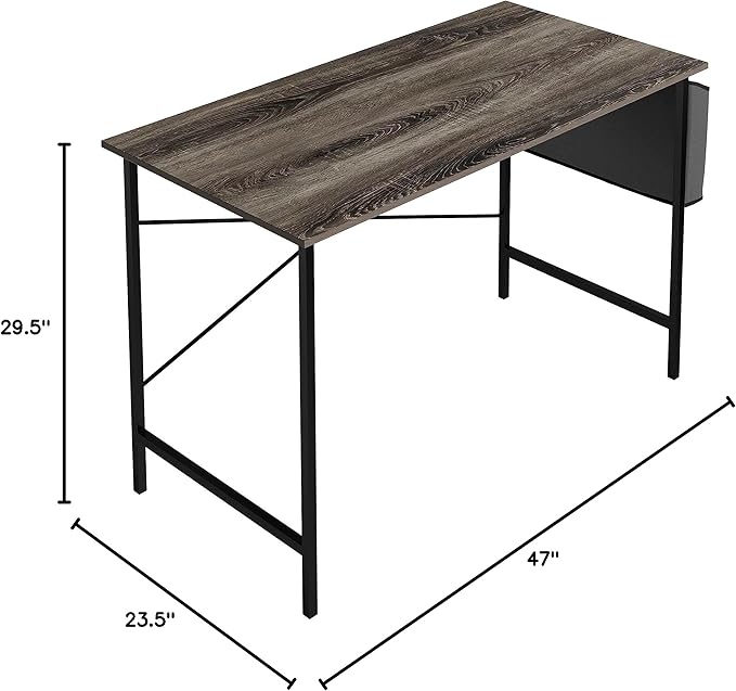 Lavish Home Modern Computer Desk with Industrial Style Woodgrain Look and Steel for Home Office, Bedroom, or Craft Table, with Storage Bag, (L) 47” x (W) 23.5” x (H) 29.5”, Gray