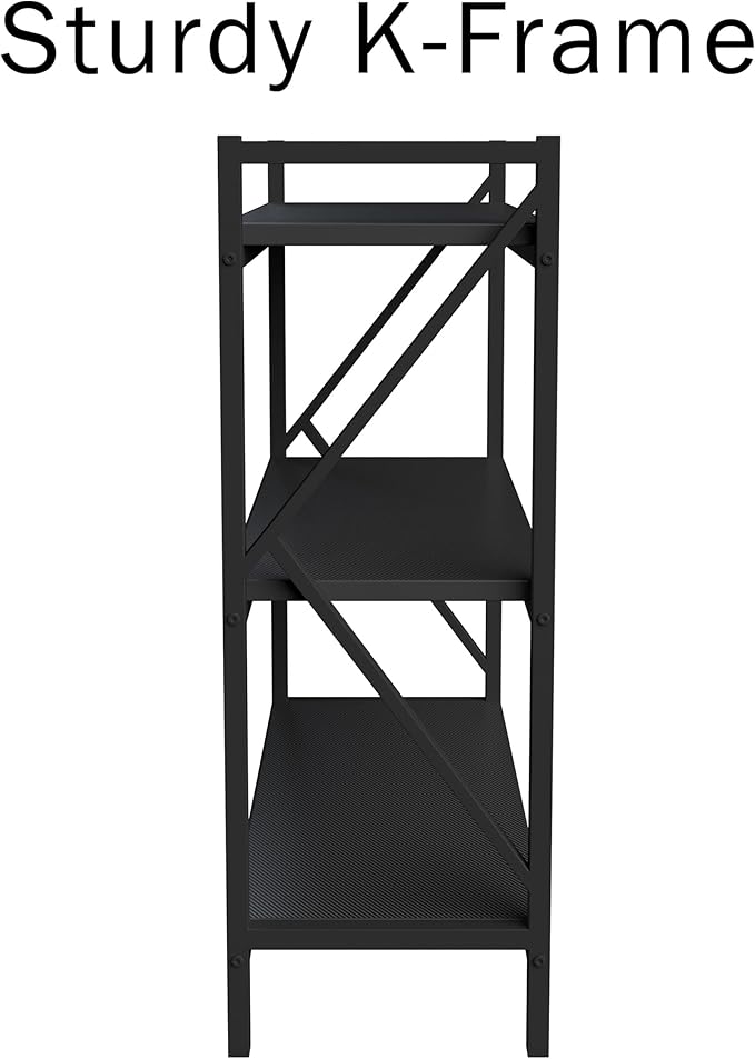 3 Shelf Bookcase - Console Table or Storage Shelf with Carbon Fiber Texture Finish and K Shaped Legs by Lavish Home (Black)