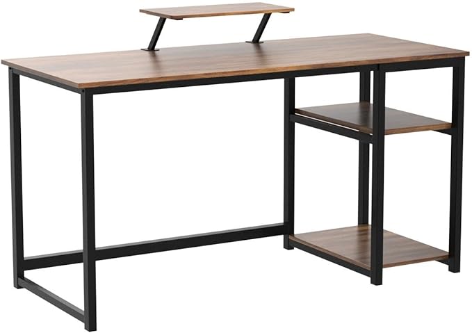 GreenForest Computer Home Office Desk with Monitor Stand and Reversible Storage Shelves,55 inch Modern Simple Writing Study PC Work Table,Walnut