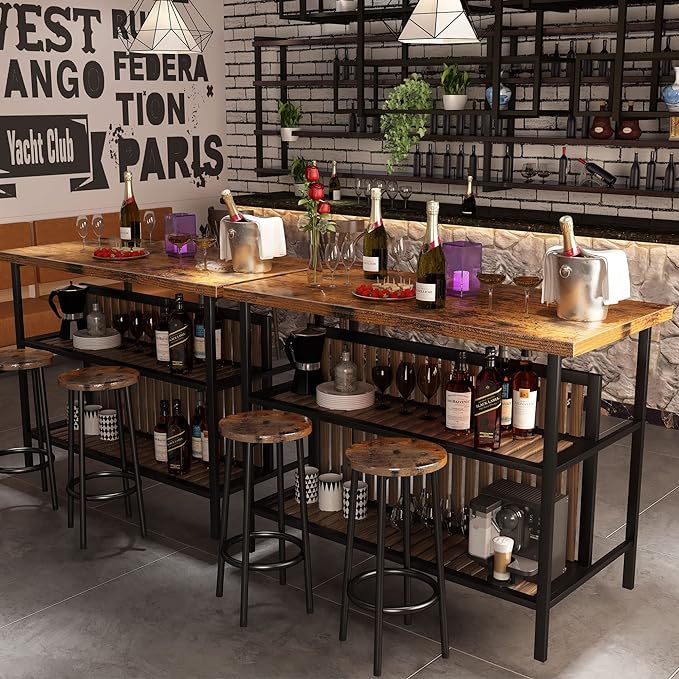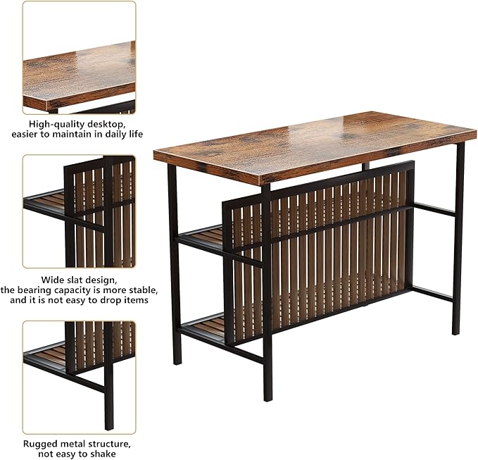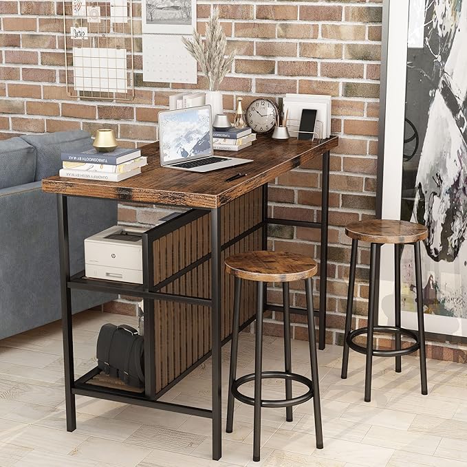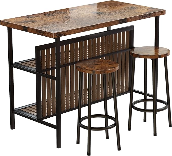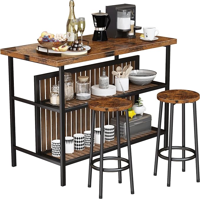 DKLGG Kitchen Island with Storage, 3 Piece Dining Table Set with 2 Tier Storage Shelves, Bar Table with Barstool, Sturdy Island Table with Chairs for Restaurant, Living Room