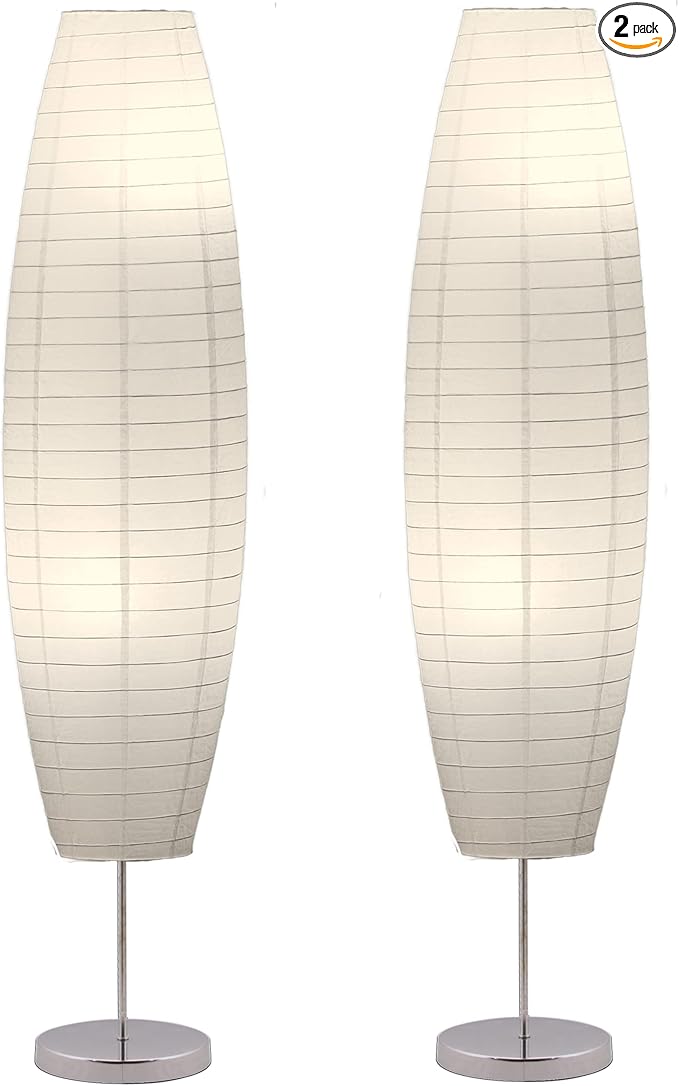 LIGHTACCENTS Rice Paper Floor Lamps 59-Inch Tall Set of 2 Paper Lantern Lamps with Paper Shades - Rice Paper Floor Lamps for Living Room Fits in Modern Room Decor Dorm Room Essentials (2-Pack)