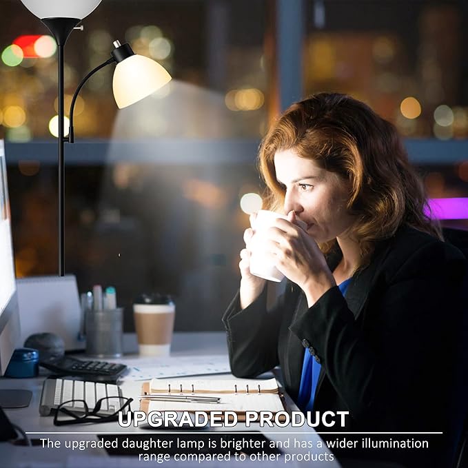 Floor Lamp, Remote Control with 4 Color Temperatures, LED Torchiere Floor Lamp with Adjustable Reading Lamp for Bedroom, Standing Lamps for Living Room, Bulb Included (Matte Black)