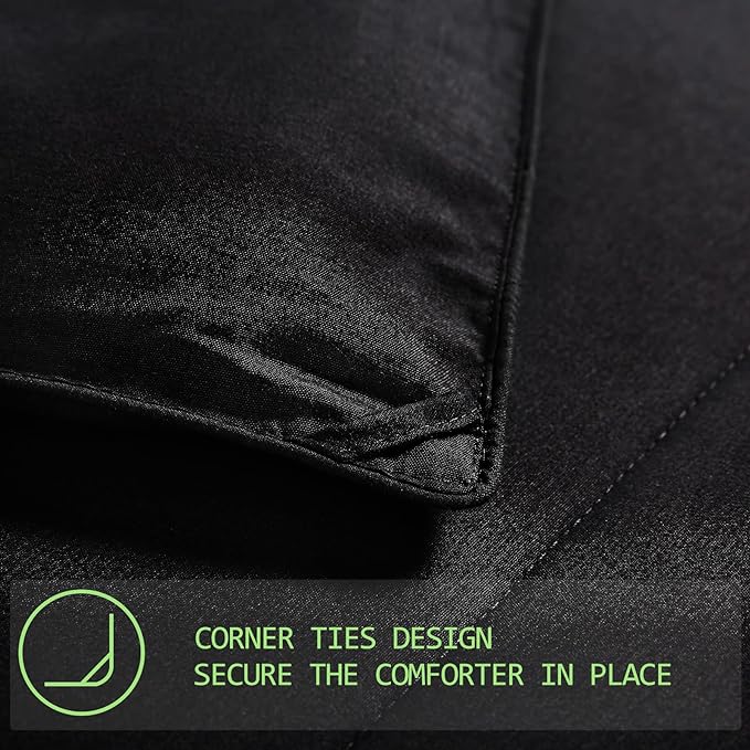 AMGUI California King Comforter Set 3 Pieces - Goose Down Alternative with 2 Pillow Shams - Extra Thick - Soft and Comfortable - Machine Washable (California King,Black)
