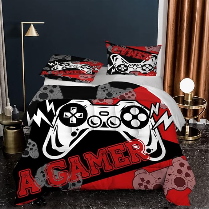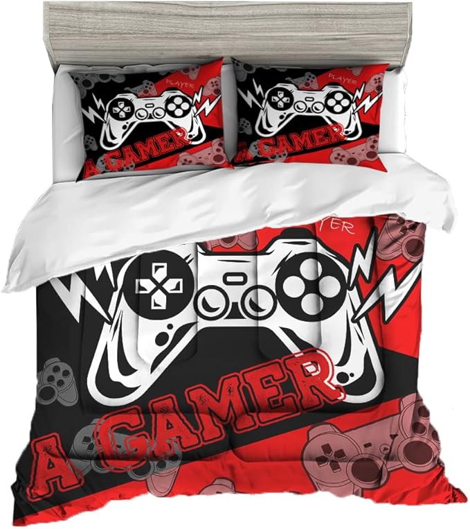 Sunnycitron Gamer Bedding Set for Boys Gamer Comforter sets Queen Gaming Bedding Kid's Comforter Set Boys Teen Gamepad Gaming Comforter,1 Comforter 2 Pillowcases