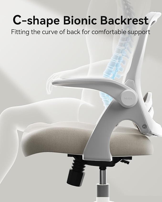 Hbada Office Chair, Desk Chair with Flip-Up Armrests and Saddle Cushion, Ergonomic Office Chair with S-Shaped Backrest, Swivel, Mesh, for Home and Office, Beige