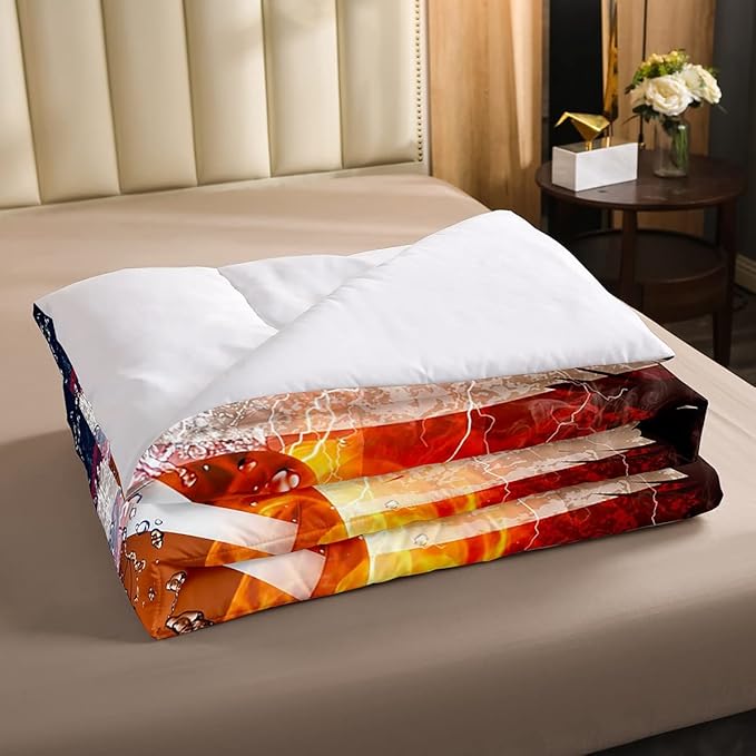 Boys American Football Comforter Set, United States Flag Down Comforter Queen Size, Soccer Sports Games Bedding Set for Kids Teens Adult Men, Geometric Stripes Retro Duvet Sets, Blue White and Red