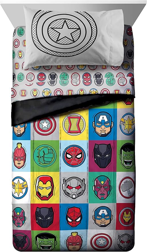 Jay Franco Marvel Avengers Pop 7 Piece Full Size Bed Set - includes Comforter & Sheet Set - Super Soft Fade Resistant Microfiber (Official Marvel Product)