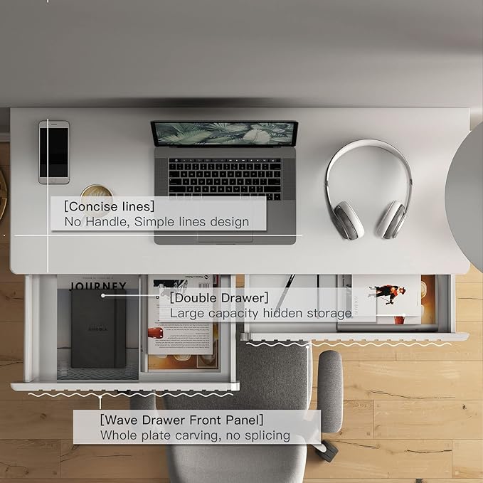 About This [Elegant Modern Design] Modern aesthetics, drawers with full wave carving, white polished table top, antique brass metal legs...