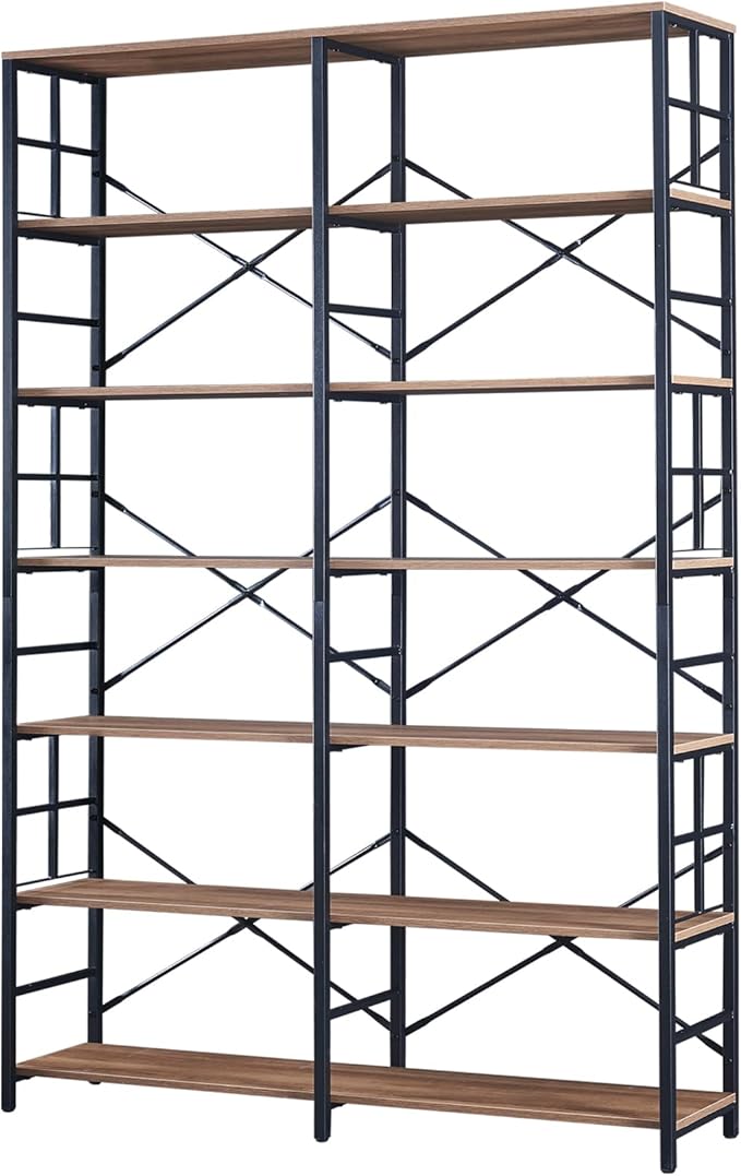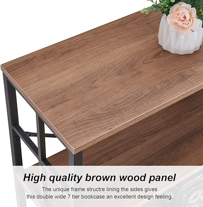 HOMISSUE Tall Bookshelf, 84" Bookshelves and Bookcases Double Wide 7-Tier Bookshelf, Tall Bookcase Wood Style and Metal Open Display Shelves for Living Room Home Office, Rustic Brown