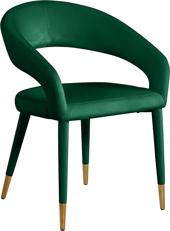 Meridian Furniture Destiny Collection Modern | Contemporary Velvet Upholstered Rounded Back Dining Chair, 23" W x 23" D x 31.5" H, Green