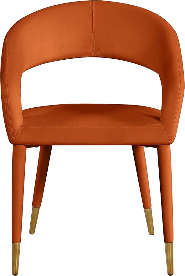 Meridian Furniture Destiny Collection Modern | Contemporary Velvet Upholstered Rounded Back Dining Chair, 23" W x 23" D x 31.5" H, Cognac
