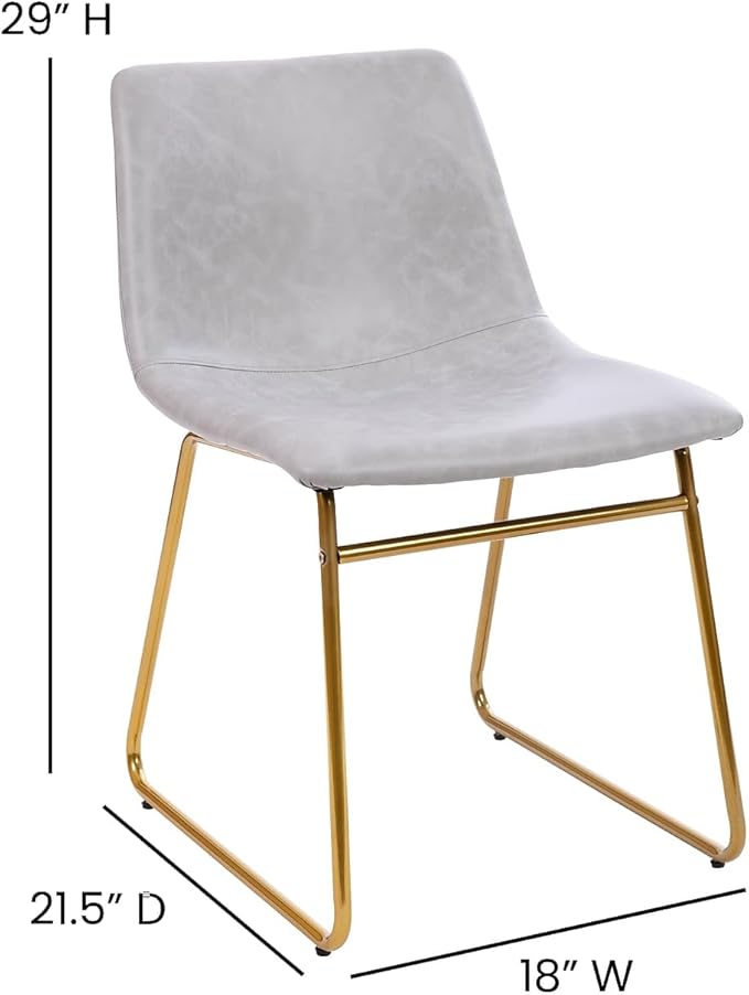 Flash Furniture Butler 18 Inch Commercial Grade LeatherSoft Dining Table Height Chair, Mid-Back Gold Sled Base with Light Gray LeatherSoft Upholstery, Set of 2