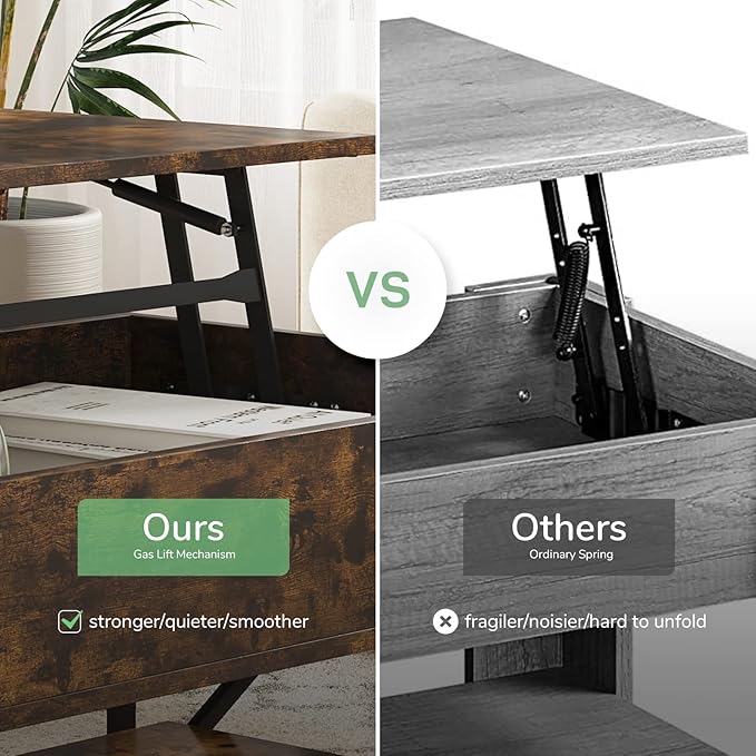 Novilla Lift Top Coffee Table with Storage 40 Inch Wood Lift Up Center Table for Living Room Tea Table with Hidden Compartment Rising Tabletop Table Cocktail Table, Rustic Brown