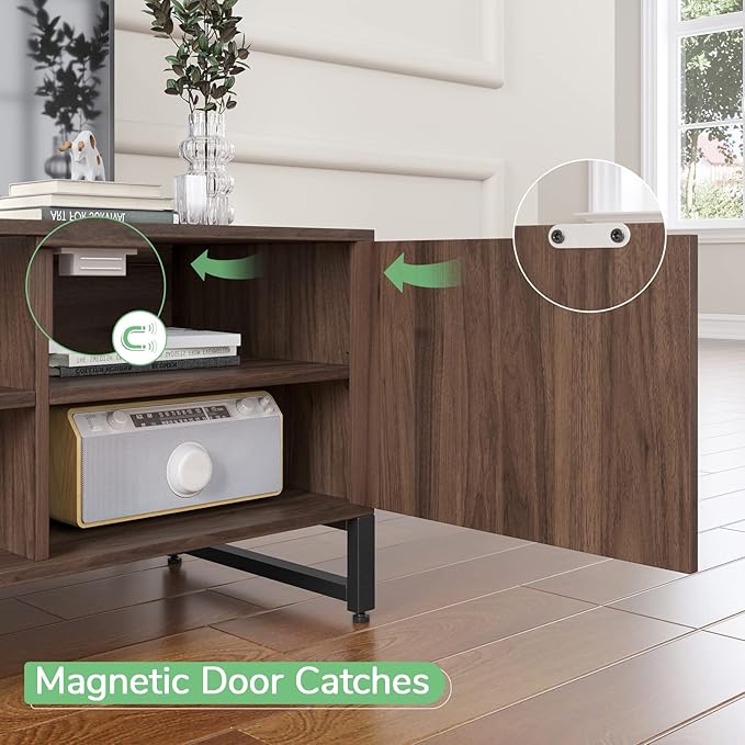 Novilla Media Console, TV Stand for TV's up to 50" Flat Screen Living Room Storage Cabinet Doors and Shelves Entertainment Center, 43 Inches, Walnut