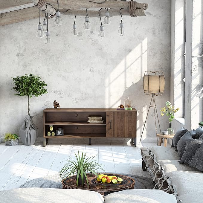 Novilla Media Console, TV Stand for TV's up to 58" Flat Screen Living Room Storage Cabinet Doors and Shelves Entertainment Center, 53 Inches, Walnut