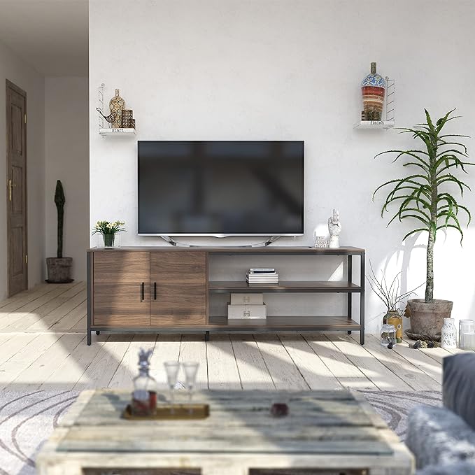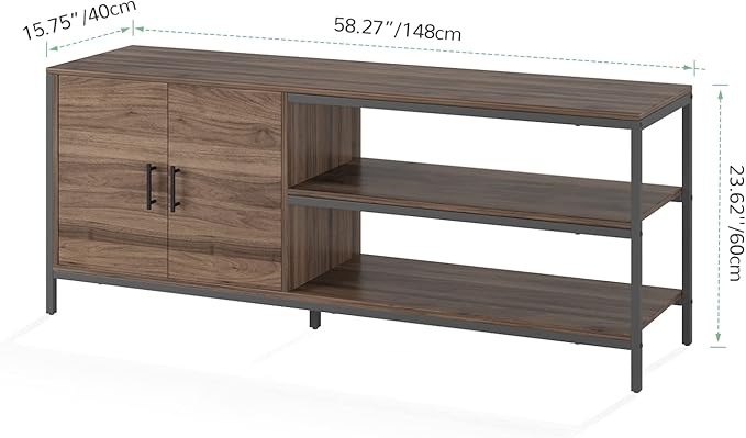 Novilla Retro Farmhouse TV Stand for TVs up to 65 Inches, Living Room Entertainment Center for Flat/Curved Screen, 58 Inches, Walnut