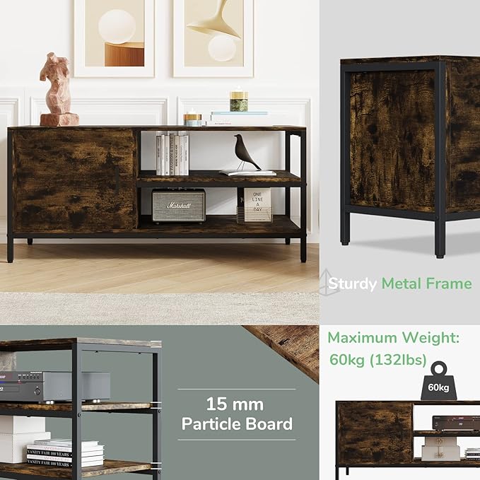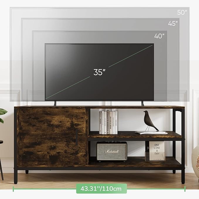 Novilla Retro Farmhouse TV Stand for TVs up to 50 Inches, Living Room Entertainment Center for Flat/Curved Screen, 43 Inches, Brown